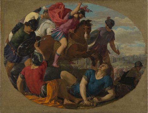 This absence is doubtless due to the fact that our painting was part of a series of compositions illustrating a pastoral tale such as Aethiopica by Heliodorus of Emesa or an ancient text such as Livy’s Histories. However, it is possible to exclude the Gerusalemme liberate by Tasso as a source, as painters usually identified the Muslim soldiers of the story with turbans, which are not visible in our composition.