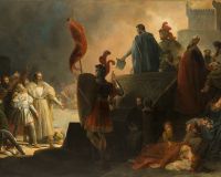Mais la galerie a aussi accumulé au fil des années de nombreuses œuvres dans les genres dits « troubadour » et « historique » que nous n’avions jamais eu l’occasion d’étudier et de présenter ensemble. La moisson, qui fait la part belle aux artistes lyonnais, mais englobe aussi des tableaux et des dessins allemands, anglais, belges, espagnols, norvégiens et suédois, ne nous semble pas dénuée d’intérêt pour l’histoire de l’art. Plusieurs d’entre eux sont en rapport avec des œuvres présentées dans l’exposition conjointe des deux musées : premières pensées, esquisses, études de têtes, riccordi... Mais l’étude de notre fonds a surtout permis quelques belles (re)découvertes : Richard Cœur de Lion, autrefois attribué à Fleury Richard et rendu à Jean-Antoine Laurent ; Saint Louis recevant la couronne de Baudouin II, l’un des plus remarquables tableaux de l’Espagnol Rafael Tejeo, qui évoque, par sa provenance princière, les vicissitudes de la monarchie espagnole au XIXe siècle ; une grande composition historique d’Alexandre-Évariste Fragonard, enfin, Une Condamnation sous le règne de François Ier, qui a connu une longue période de purgatoire sous une attribution à Thomas Couture, en raison d’un monogramme abusif qui avait déclassé l’œuvre au lieu de la valoriser.