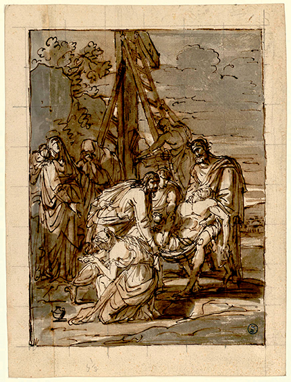 ill. 2. Descente de Croix, vers 1809. Plume, encre brune, lavis gris sur mise au carreau, 30,7 x 23 cm. Montpellier, musée Fabre.