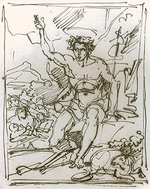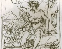 Dès ses débuts, les thèmes bibliques tiennent plus de place dans les travaux du pensionnaire de l’Académie de France à Rome que chez aucun autre de ses compatriotes. Même si cet intérêt n’a rien de surprenant avant l’avènement de la République et