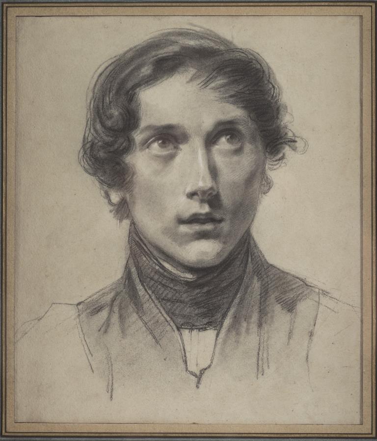 Crayon noir et estompe, rehauts de craie blanche