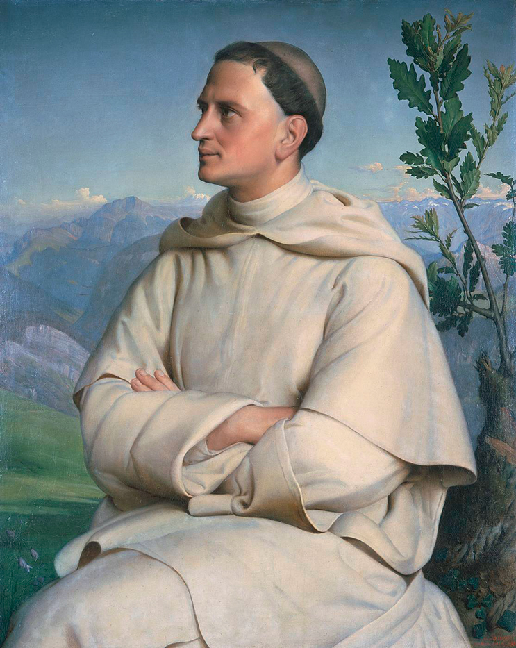 Il faut rappeler aussi que le portrait originel a été une aventure autant qu’une peinture, dont les circonstances parfois pittoresques n’ont pas été sans conséquences sur les options iconographiques et, pourquoi pas, picturales. Paul Brac de La Perrière, jeune avocat, plaide alors la cause du Père Lacordaire dans le procès intenté par ce dernier contre l’éditeur Marle aîné, qui a publié les sermons de Lyon (1845) sans exactitude ni autorisation. C’est sa victoire qui contraint le moine à accepter de poser pour Janmot, en invitant les Lyonnais en juillet 1846 à Chalais, bien qu’il ait promis la même chose à Lavergne, ce qui fait écrire à Paul Brac dans son journal, tenu quotidiennement : « Je vois d’ici Louis grimaçant3!» Car à cette époque, la notoriété du modèle est essentielle dans la renommée d’un portrait. Lavergne menaçant de venir lui aussi à Chalais, le ciel bleu du tableau pourrait devenir orageux mais, par bonheur, il renonce à ce projet. Lacordaire écrit alors à Brac : « Dites je vous prie à Janmot qu’il peut venir à Chalais et que je trouverai bien trois heures à lui donner pendant huit jours. » Selon Paul, « Janmot aurait voulu de l’enthousiasme de la part [de Lacordaire]… ce brave garçon a des désirs magnifiques ». L’expédition débute à La Mulatière, le peintre et son ami partent à l’assaut de la montagne de Chartreuse où se situe Chalais, à 3 heures du matin, le 24 juillet 1846, pour attraper, le train de 5 heures, qui arrive à Voreppe à 15 heures. Ils attaquent alors la montée (en plein soleil), trimballant le lourd matériel de peinture, suant « de façon inouïe » dans la montée au couvent. Mais arrive l’émotion: « Le père Lacordaire est descendu dans la cour pour nous recevoir, il déploie toute l’amabilité possible… il avait à coeur de témoigner à son avocat toute sa gratitude. »