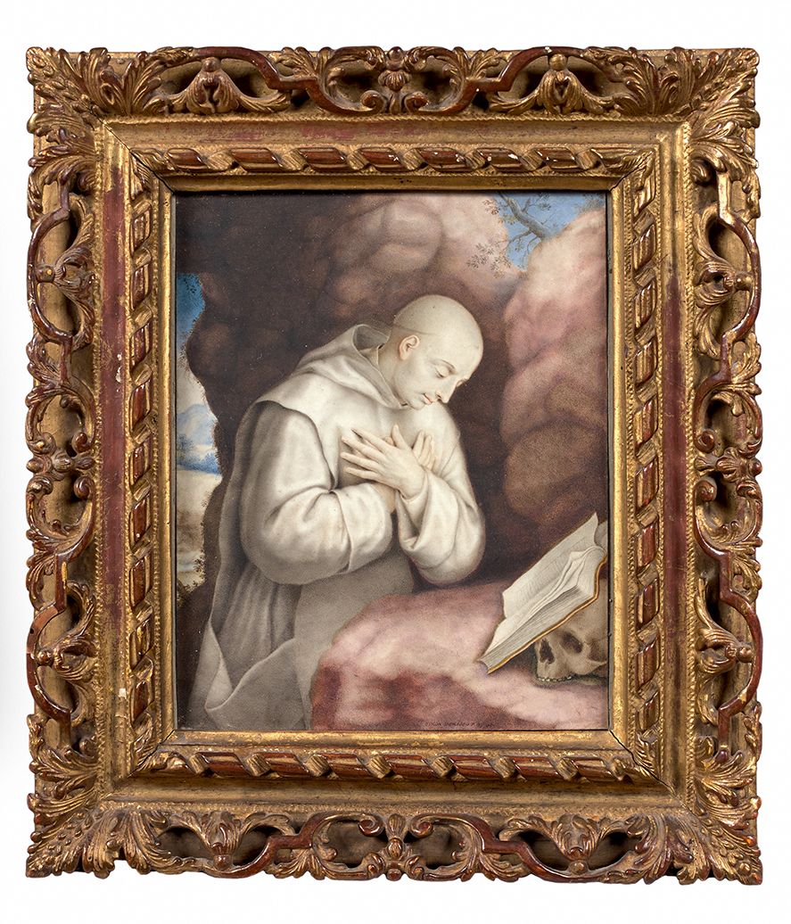 Le choix de ce médium donne sa singularité à une image de dévotion en accord avec l’intimité de la prière, interprétation raffinée d’un modèle qui a dû connaître un certain succès à partir des années 1650. (M.P.)