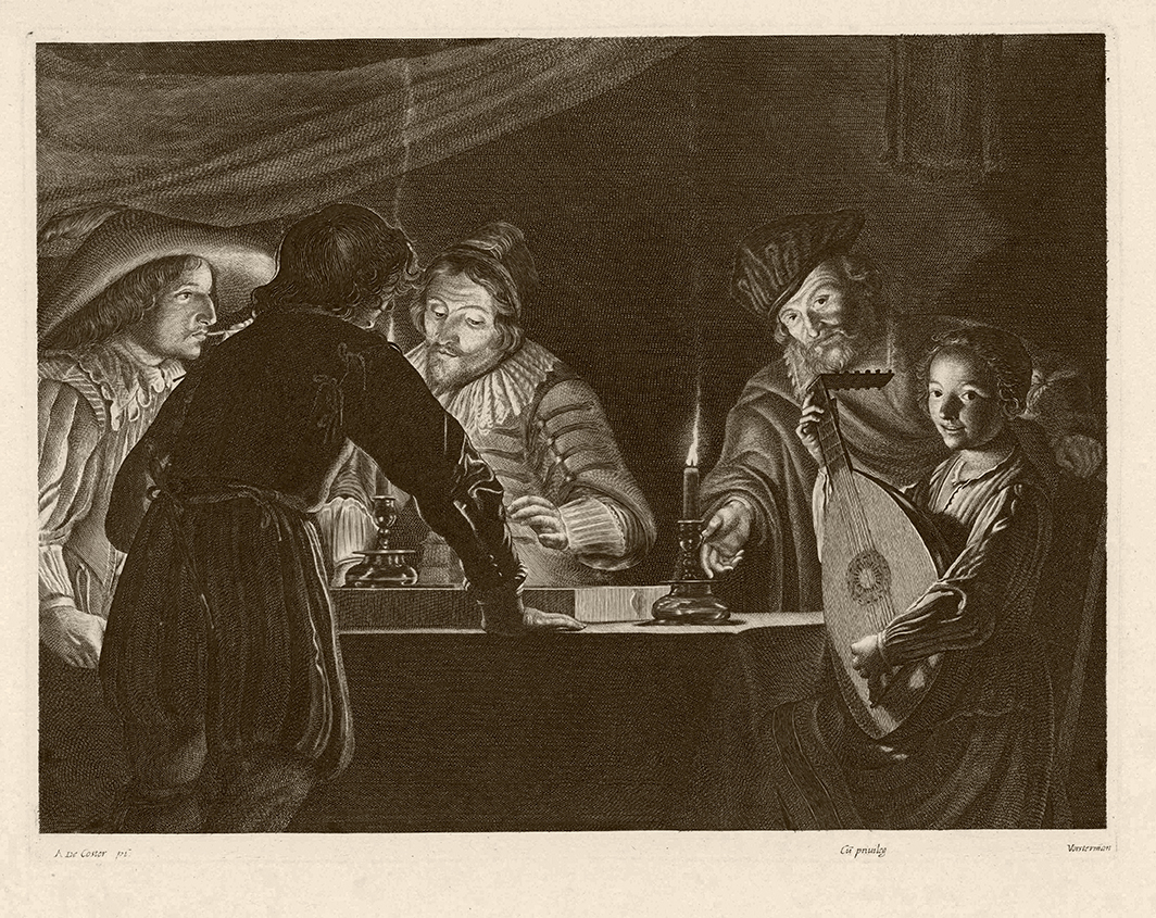 ill. 1 : Lucas Vorsterman d'après Adam de Coster, La Partie de backgammon, burin, 26,6 x 25 cm, Genève, Cabinet d'arts graphiques des musées d'Art et d'Histoire.