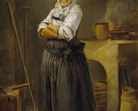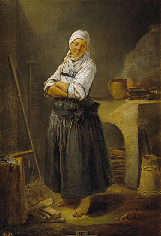 La figure corpulente et solidement campée remplit l’espace et interpelle le spectateur de sa forte présence, avec d’autant plus d’autorité que son expression grave et absorbée suscite une émotion du même ordre. La touche grasse trousse ses pauvres atours avec facilité, mais sans complaisance – la pittoresque toque bordée de fourrure, qui dans des tableaux de chevalet est le prétexte d’un morceau de virtuosité, n’est pas faite ici pour flatter l’oeil et reste d’une importance secondaire. La date de 1757 inscrite sur le cartouche du cadre autorise à subodorer qu’il faisait partie de l’envoi du peintre au Salon de 1759, lequel n’était pas détaillé dans le livret4.