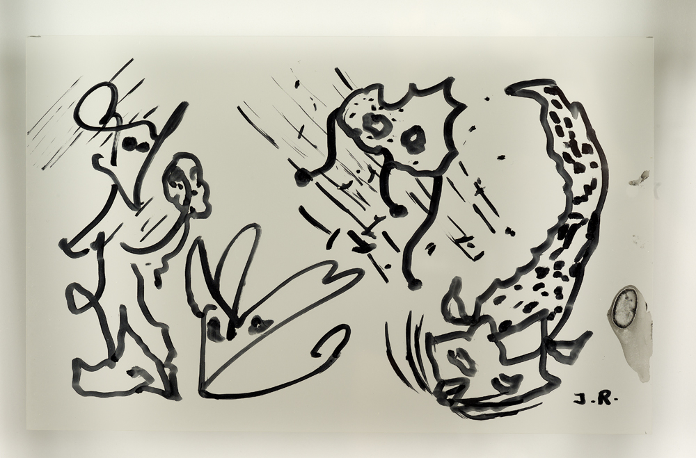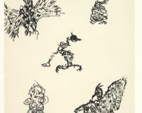 Comme Henri Michaux, il est peintre aussi bien que poète. Écrire et peindre, dessiner, lui sont identiques en leur fond. C’est un abécédaire qui se cherche un corps. Ses encres viennent du lointain intérieur. C’est une écriture première royale de volupté. Il joue ce jeu à qui perd gagne. Le grand toit de ses idées il lui enlève ses tuiles de tête une à une.
